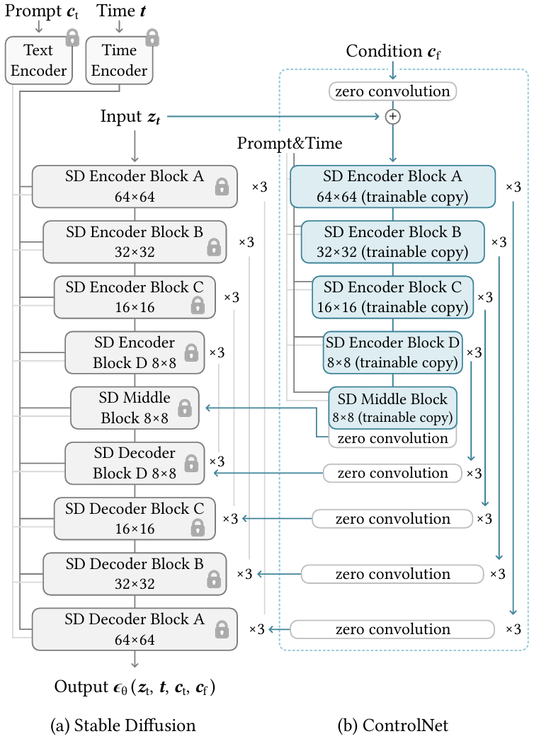 - 훈련 가능한 복사본: 기존 모델의 인코더 블록들을 복사하여 새로운 제어 조건을 학습할 수 있도록 만든 병렬 네트워크입니다.