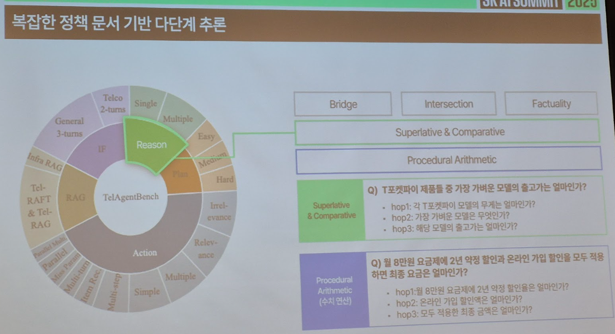 - 시사점: React Agent 성능 평가를 위해 구축된 데이터셋으로, 사내 모델 학습을 위해 수집한 고품질 데이터를 기반으로 평가용 데이터셋이 자연스럽게 탄생한 형태로 추정. 통신 업무에 필요한 조건들을 반영한 벤치마크로, 의미 있는 기준점을 제시